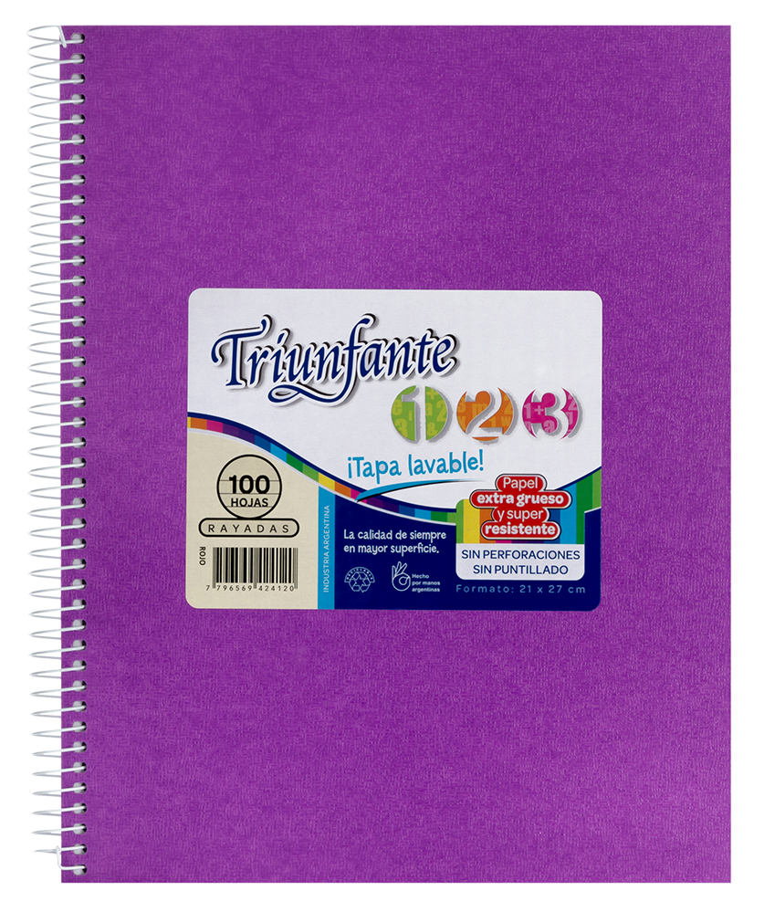 CUADERNO TRIUNFANTE 21X27 VINIL.100HC LILA-483226-