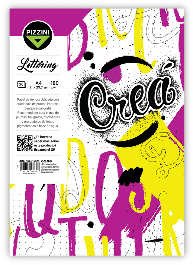BLOCK LETTERING PIZZINI A4 180G X 30HJ -PBLETX30A-