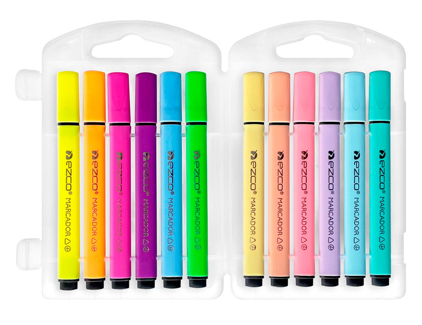 MARCADOR EZCO TRIANGULAR X 12 NEON+PASTEL-403700-
