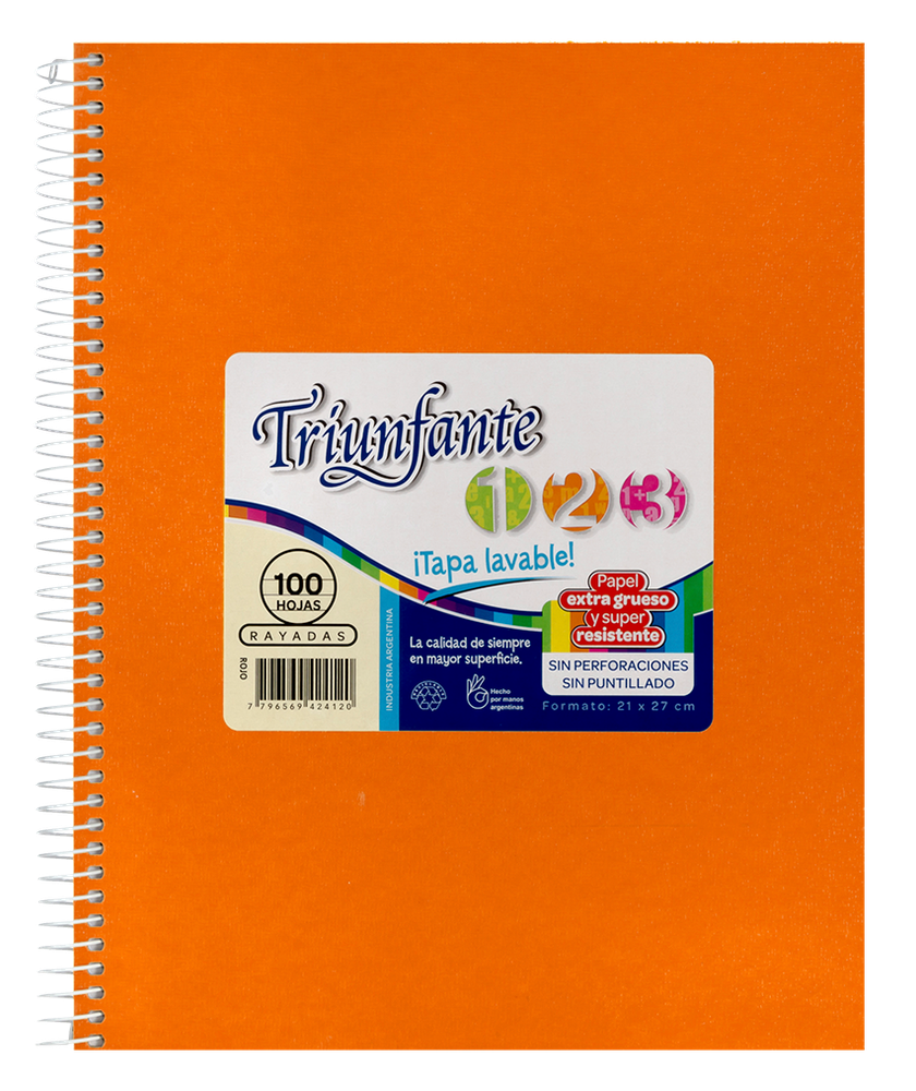 CUADERNO TRIUNFANTE 21X27 VINIL.60HR NARANJ-453120