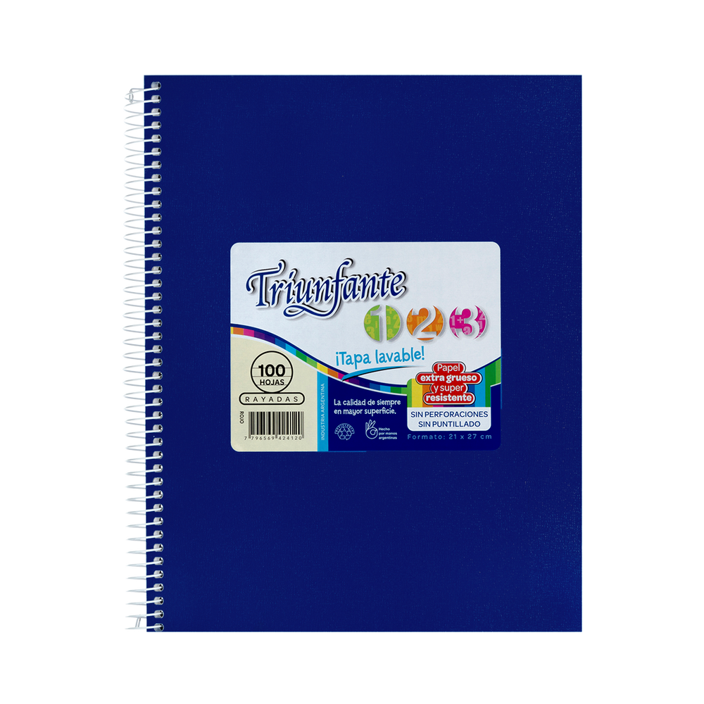 CUADERNO TRIUNFANTE 21X27 VINIL.60HR AZUL-433122-